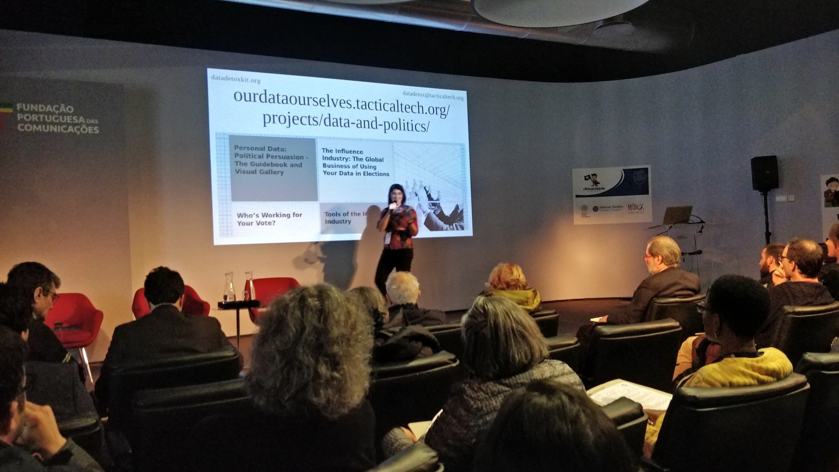 Uma apresenta莽茫o de Safa Ghnaim, do Data Detox Kit da Tactical Tech, seguida de um debate moderado por Hugo S茅neca, jornalista da Exame Inform谩tica.